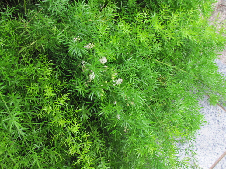 店前のミニガーデンの淡いグリーンが可愛いアスパラちゃん