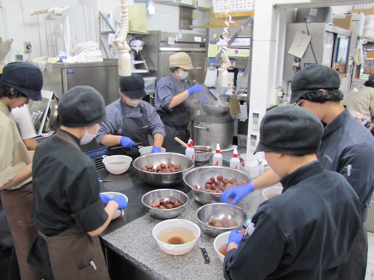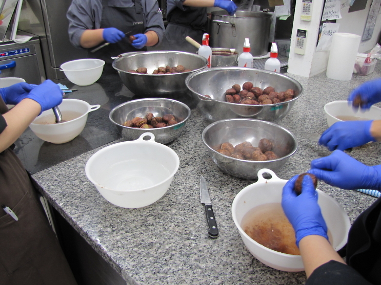 そこからシロップに漬けてさらに火を入れ甘露煮に♪