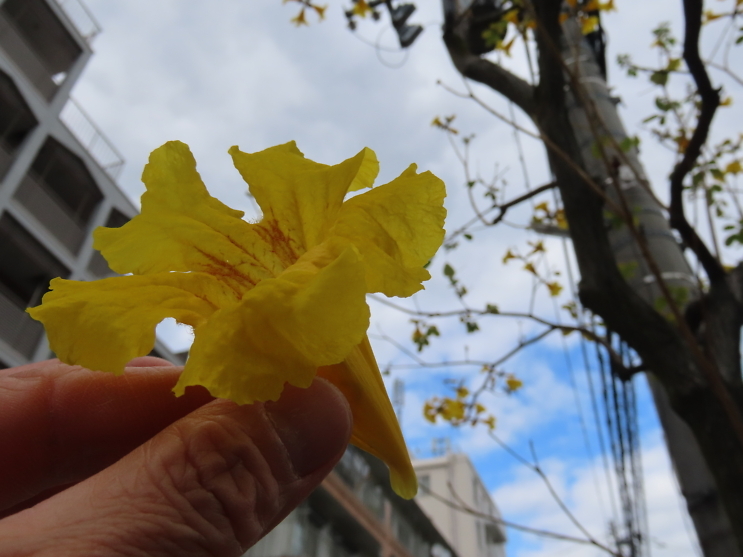 施設の方に黄色のイペの花はブラジルの国花と教えてもらいました。