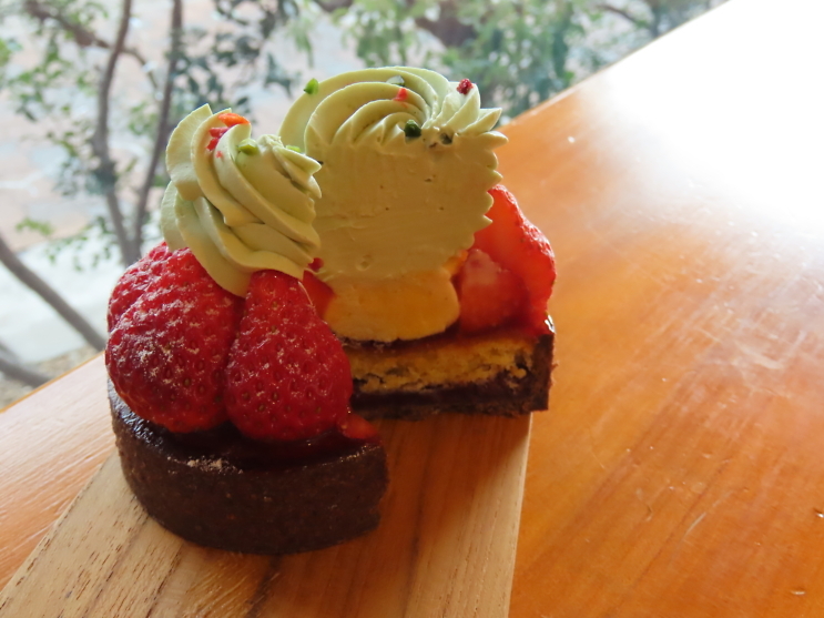 タルト底には自家製のフリュイルージュのコンフィを