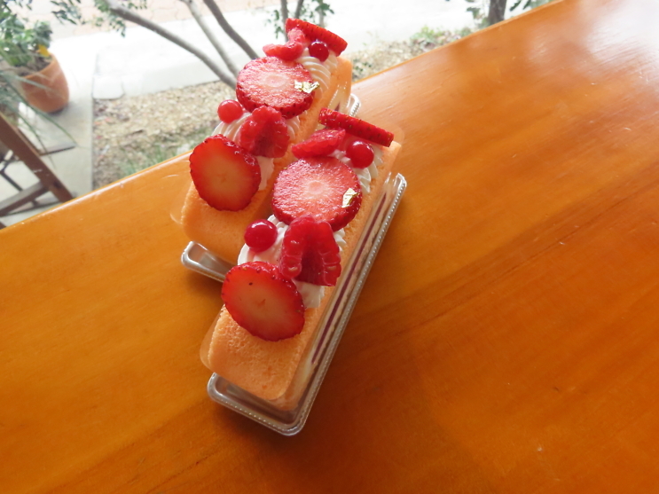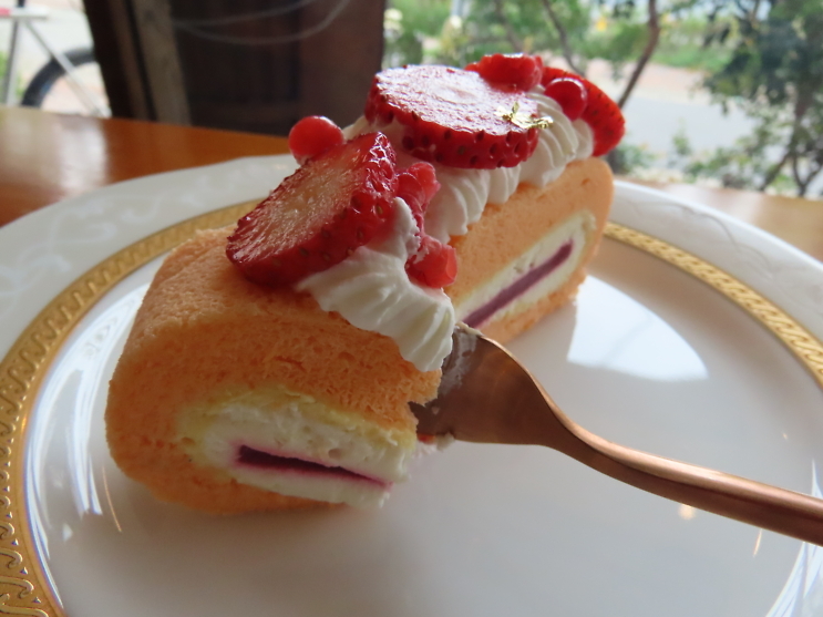しっとりとしたスフレ生地で巻き上げました